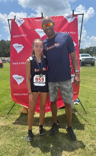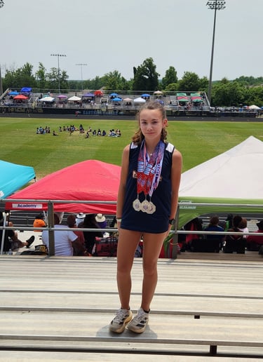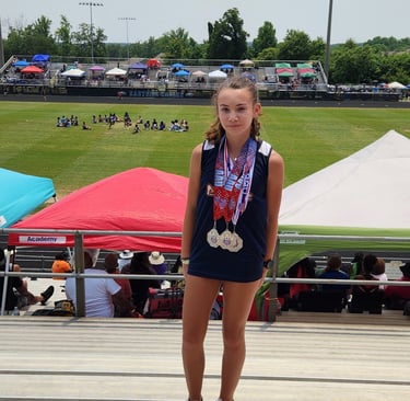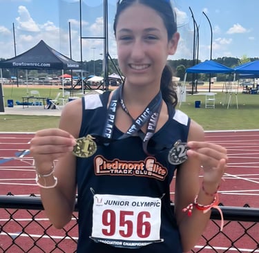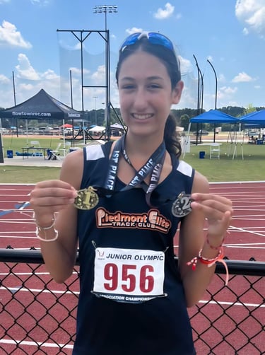 Last season, Jasmine took the track world by storm, winning the state championship and becoming the regional champion in USATF and AAU! She sprinted her way to victory in the 800m and 1500m races, and she proudly clinched 2nd place in the exhilarating 400m!
